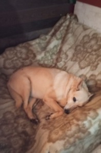 Man musste Glorias Vorderpfote amputieren … das Hinterbein war nicht operiert, - die Knochen waren gut zusammengewachsen, und die Hündin benutzt es. Man vermutetet, sie wurde schlimm geschlagen …